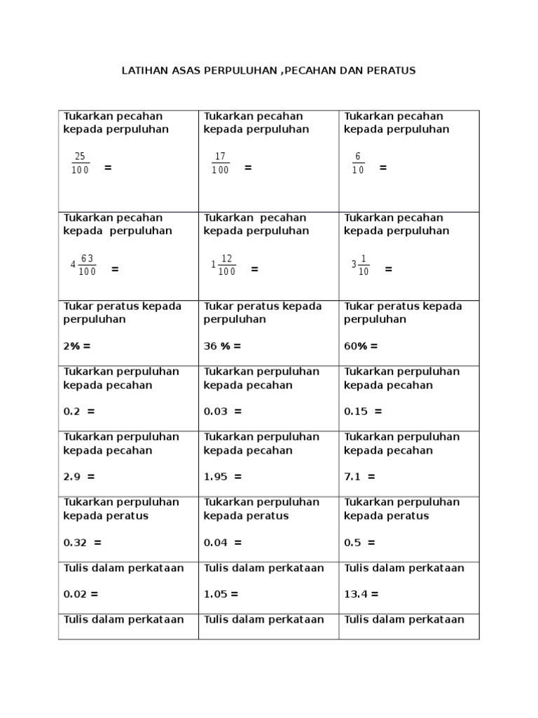 Peratusan Pecahan Dengan 100 Sebagai Tuisyen Individu Facebook from lookaside.fbsbx.com Kali ini cikgu lina kan ajarkan cara untuk menukarkan soalan berbentuk pecahan atau nombor bercampur kepada peratus. Matematik tahun 6 unit 3 : Keupayaan untuk menukar nombor, pecahan, dan perpuluhan menjadi peratusan adalah pengetahuan yang diperlukan 33% daripada nombor selalu nombor dibahagi dengan 3. Menukar peratus kepada pecahan dalam bentuk terendah. Menukar nombor bercampur kepada pecahan tak wajar jawapan latihan dalam buku teks : Pastikan anda menguasai hubungan pecahan kepada peratus. Bi mengingatkan masyarakat yang memiliki 6 pecahan uang kertas rupiah tahun. Bagaimana untuk menukar peratus kepada perpuluhan: