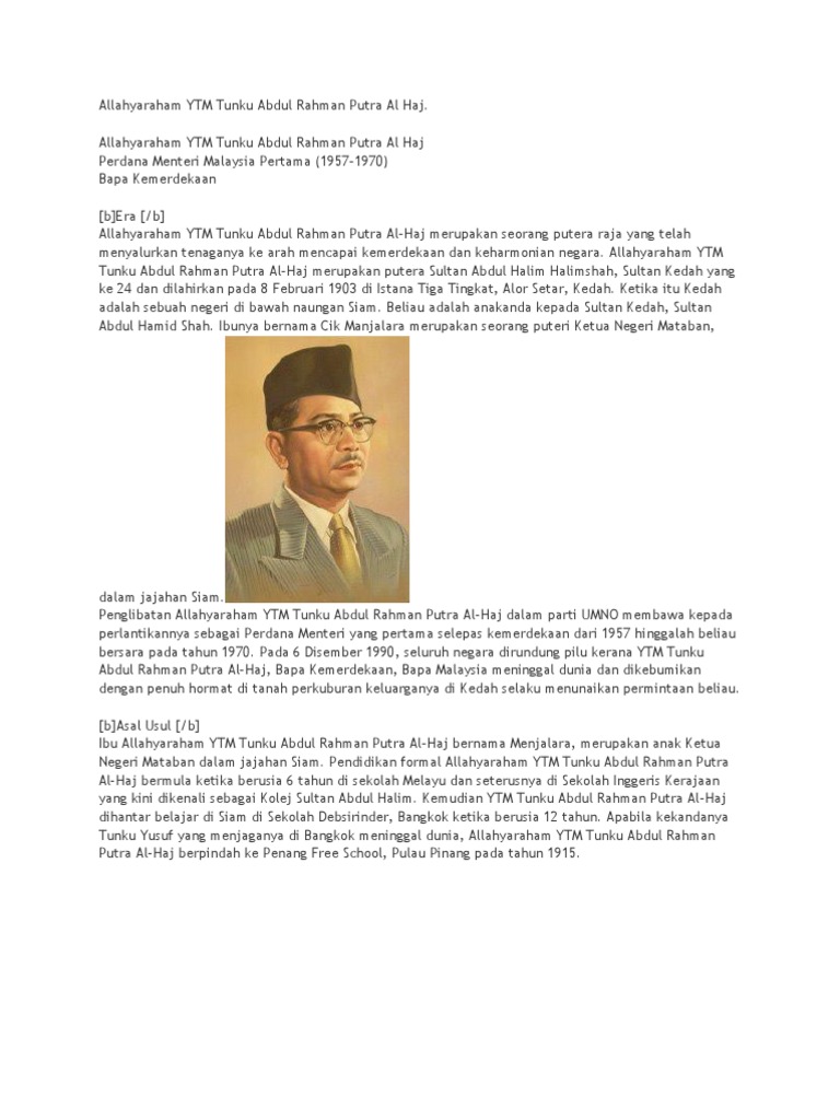 Biodata tunku abdul rahman bapa kemerdekaan. Check spelling or type a new query. We did not find results for: Maybe you would like to learn more about one of these?